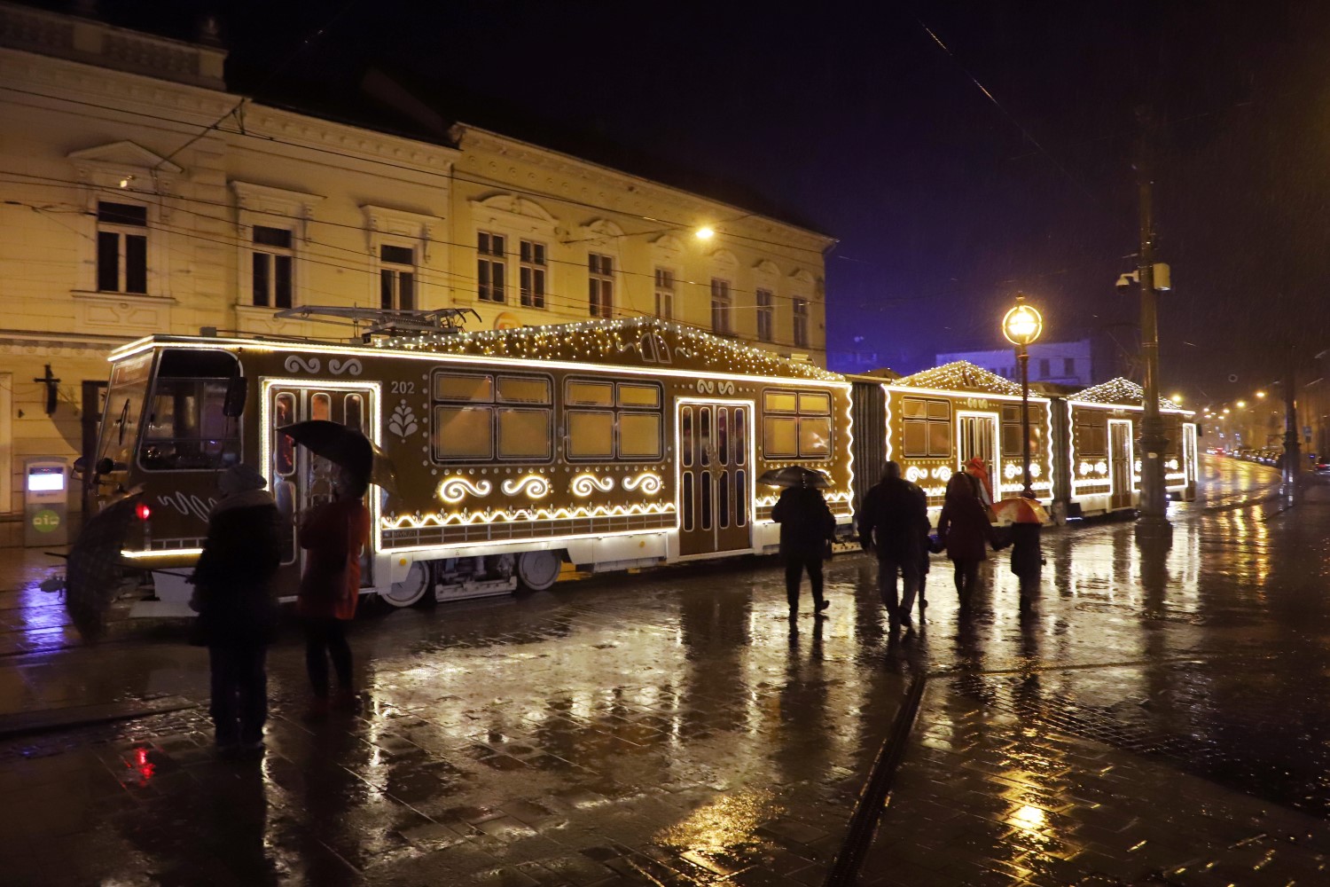 Első útján sokan elkísérték vasárnap délután, pedig fél 5-re nem, hogy eleredt, egyenesen szakadni kezdett az eső – a miskolciak mindenesetre kitartottak, többen jelezték munkatársunknak a Városház téri megállónál, hogy ők bizony az ünnepi műsor és az adventi villamos miatt mozdultak ki otthonról!