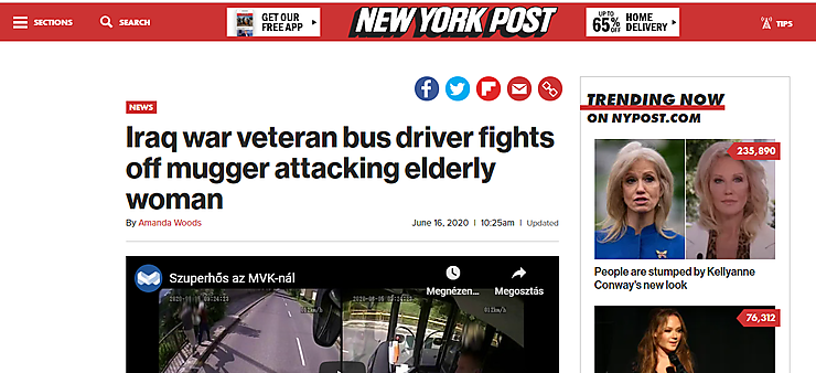 A New York Post címlapja a miskolci történettel és a feltöltött videónkkal.