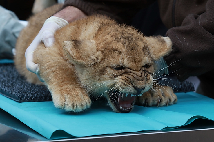 Az első orvosi vizsgálat során kiderült az is, hogy két nőstény és egy hím született. Kovács Miklós állatorvos elmondta, a fiatal oroszlánok nagyon jó egészségnek örvendenek. – Sima, komplikációmentes szülés volt. Életkoruknak megfelelően fejlődnek, mindhárman elérték a tíz kilogrammot, súlyuk tehát megfelelő, étvágyuk jó. Két-három hét múlva ugyanezeket az oltásokat kapják, valamint a veszettség ellenit – sorolta a doktor.